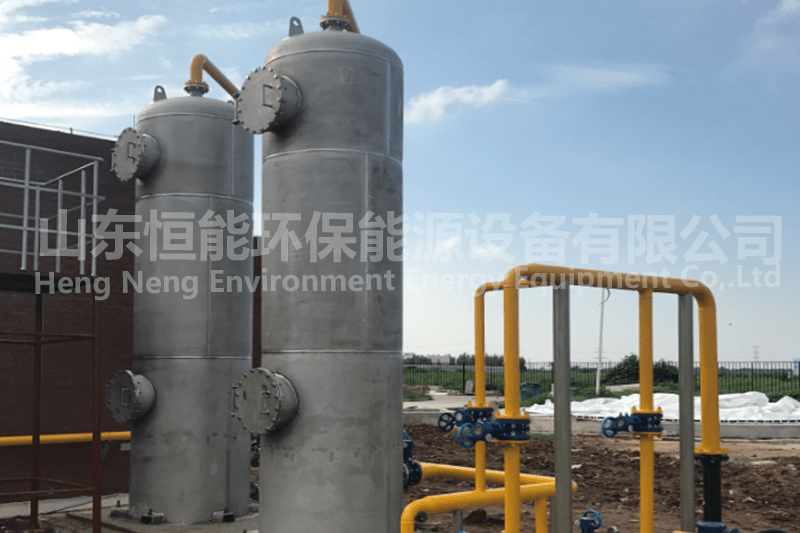 沼氣中含有大量的粉塵、污泥、水分、雜質及毒害性氣體(如HCl,H2S,NH3),為達到設備利用要求或環保排放標準,需要對原料氣中的氣體進行預處理,如增壓、脫硫、脫水、除塵等。